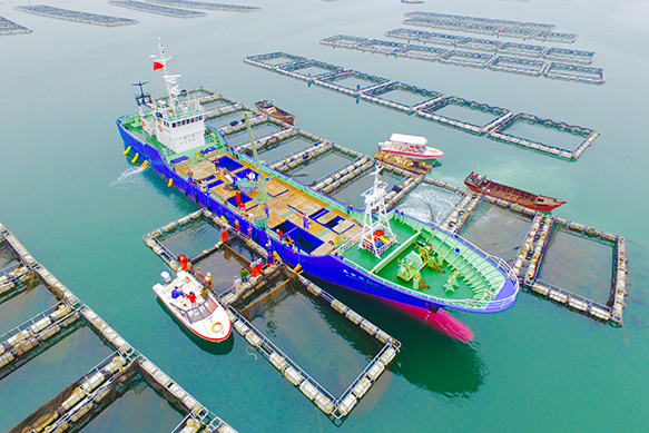 天正集團(tuán)兩大海洋牧場,位于大連市金州新區(qū)和長海縣廣鹿島,均屬黃海海域深水區(qū),采用的深??癸L(fēng)浪網(wǎng)箱,是在最初引進(jìn)日本網(wǎng)箱的基礎(chǔ)上,再設(shè)計(jì)得到了符合我國北方海域條件的深水抗風(fēng)浪金屬網(wǎng)箱,天正集團(tuán)擁有該網(wǎng)箱的完全自主知識產(chǎn)權(quán),集節(jié)能、環(huán)保、美觀和規(guī)范化養(yǎng)殖于一體,是目前中國先進(jìn)的海上養(yǎng)殖網(wǎng)箱設(shè)施之一。